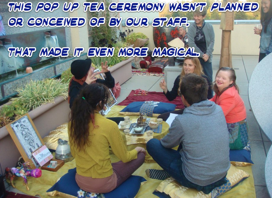 - Pop Up Tea Ceremony. Last month, a couple came in and asked if they could stage a pop up tea ceremony at the museum. We said yes, and they have now participated in several events, offering a unique mix of traditional tea ceremony, koto music, and bedazzled plastic microphones (see bottom left of photograph).